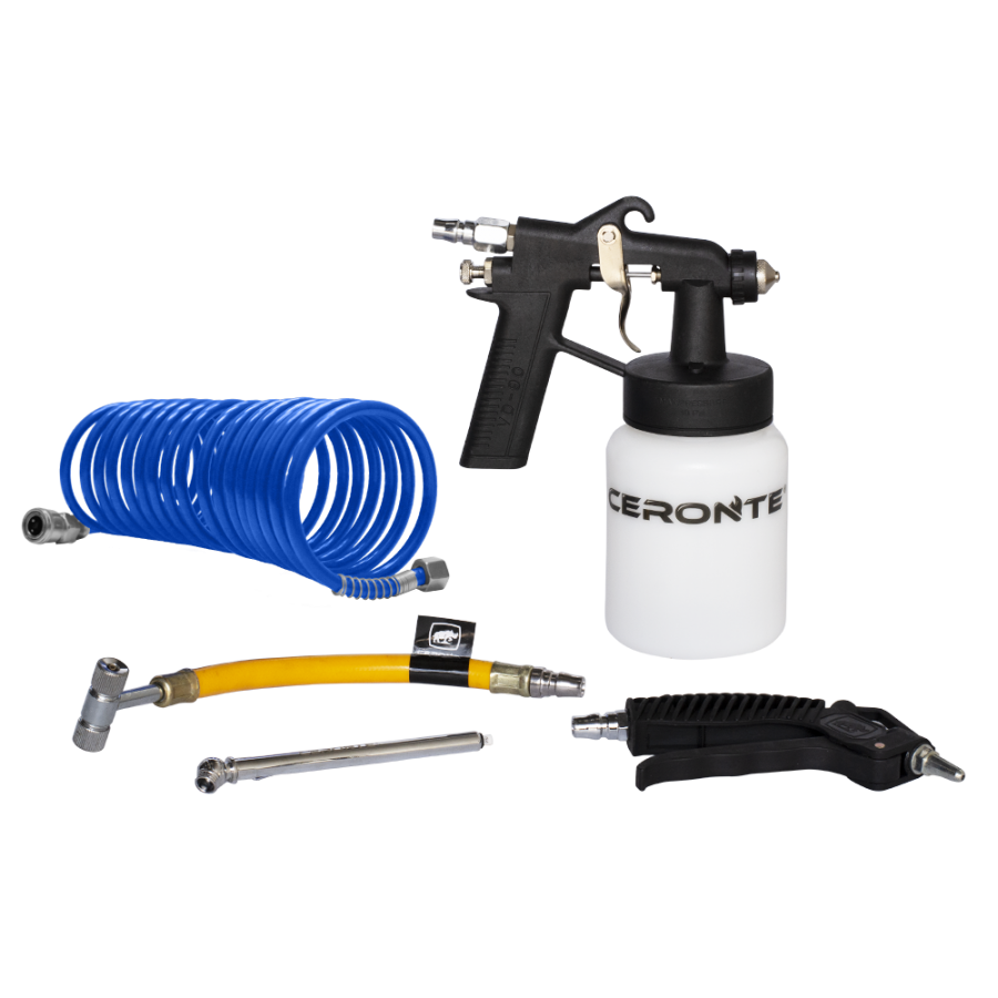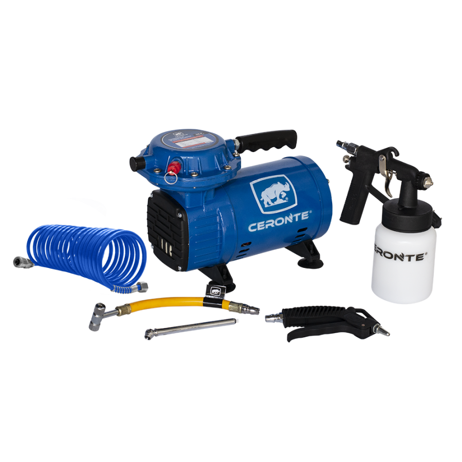 O Compressor de Ar Direto GRC 360KSB vem acompanhado de 1 pistola para pintura com caneca, 1 mangueira de 5 m, 2 bicos para pintura, 1 pistola para sopro, 1 inflador de pneu e 1 calibrador.